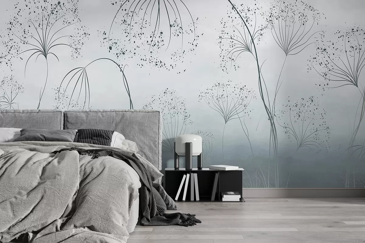 Fototapeta Niebieskie, wysokie, puszyste rośliny o delikatnych, parasolowatych kwiatach lub główkach nasion w mglistym, nastrojowym otoczeniu Nr w08258v1