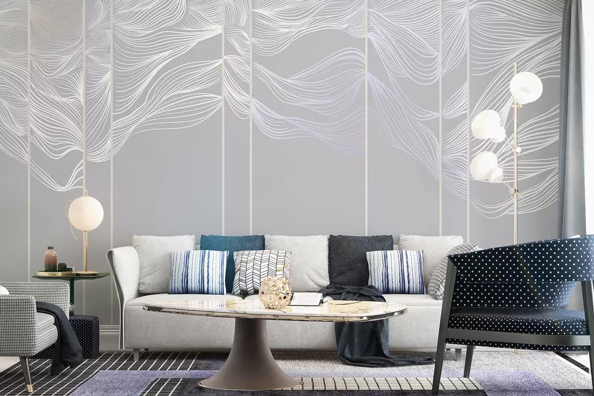 Fototapeta Płynące białe abstrakcyjne fale na jasnoszarym tle Nr w08263v1