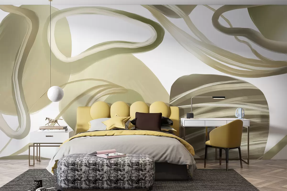 Fototapeta Abstrakcyjne, wirujące kształty i krzywe w odcieniach beżu tworzą dynamiczną i płynną kompozycję Nr w08279