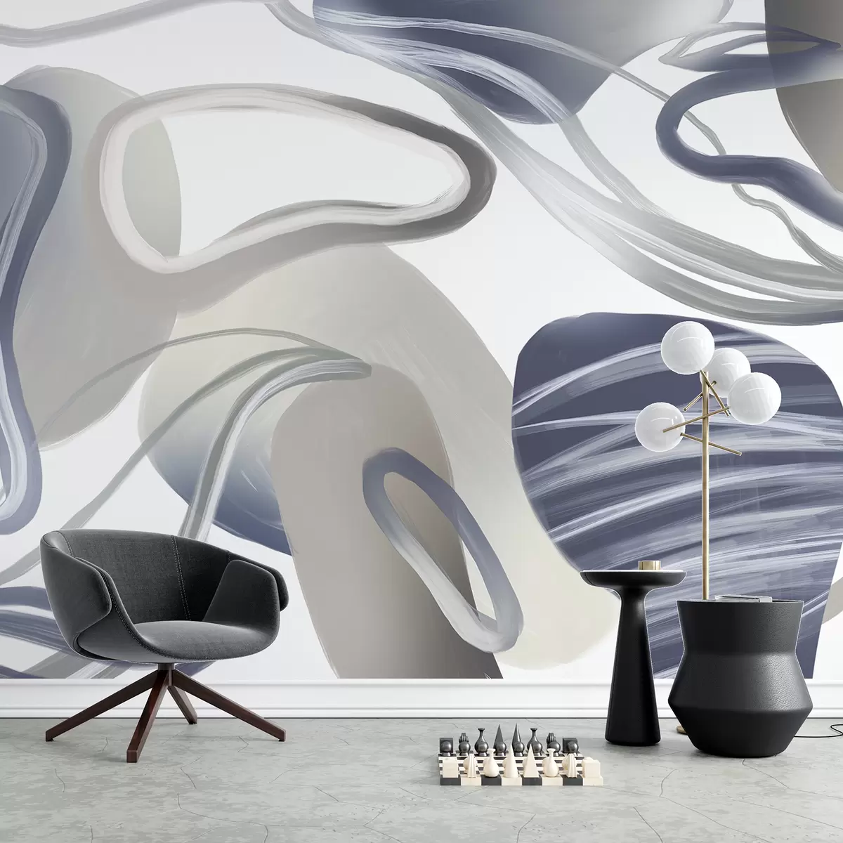 Fototapeta Abstrakcyjne wirujące kształty i krzywe w odcieniach ciemnoniebieskiego tworzą dynamiczną i płynną kompozycję Nr w08279v1