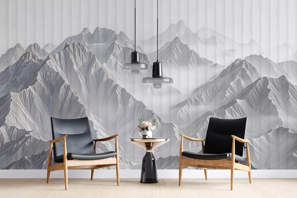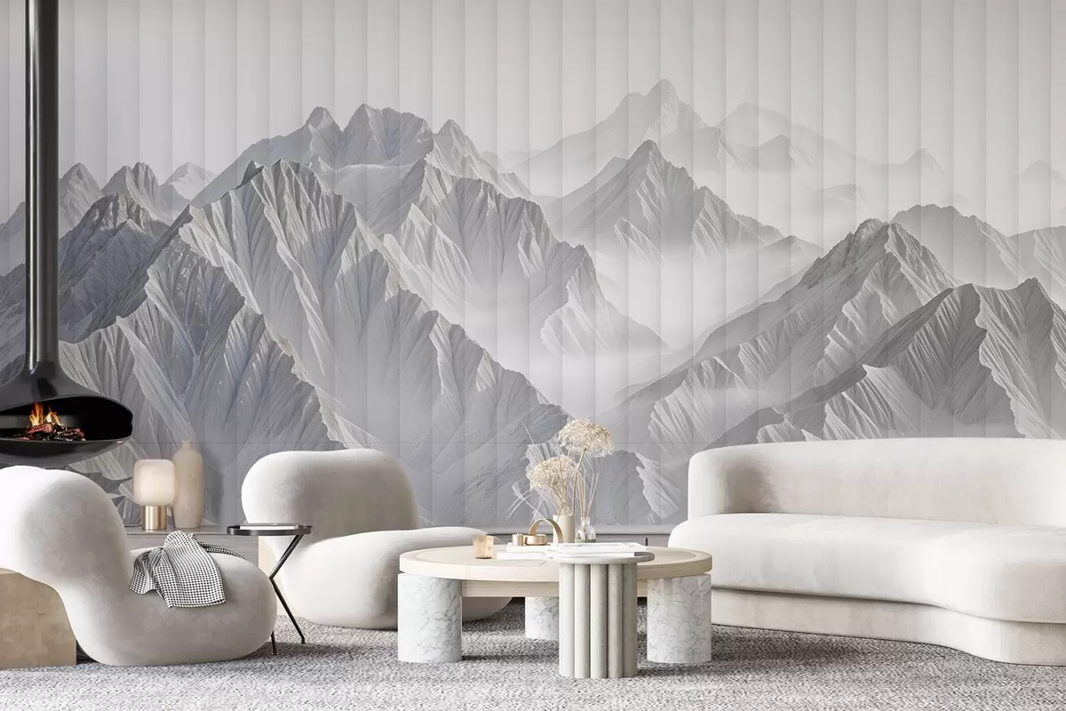 Fototapeta Minimalistyczne ośnieżone szczyty górskie w mglistym, eterycznym krajobrazie Nr w08378