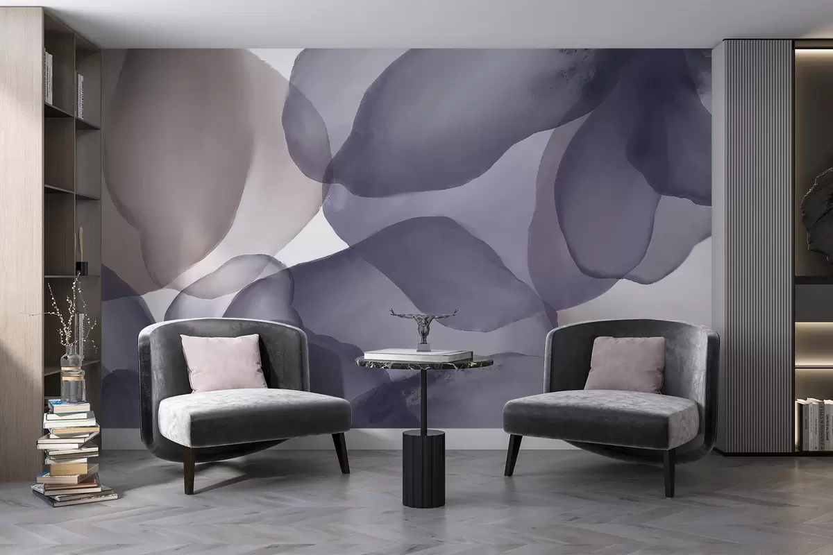 Fototapeta Abstrakcyjne ciemnofioletowe i beżowe kwiatowe kształty, miękkie i organiczne formy z poczuciem ruchu i płynności Nr w08381