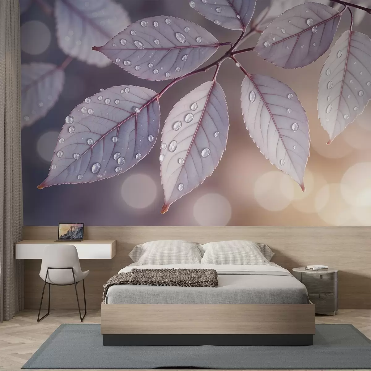 Fototapeta Delikatne fioletowe liście z kroplami wody, miękkie tło ostrości Nr w08419