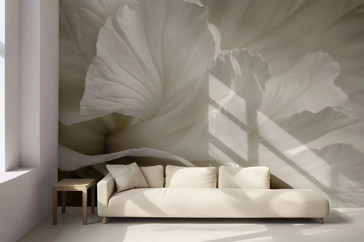 Fototapeta Abstrakcyjny minimalistyczny nadruk delikatnego białego kwiatu z miękkimi, aksamitnymi płatkami Nr w08424