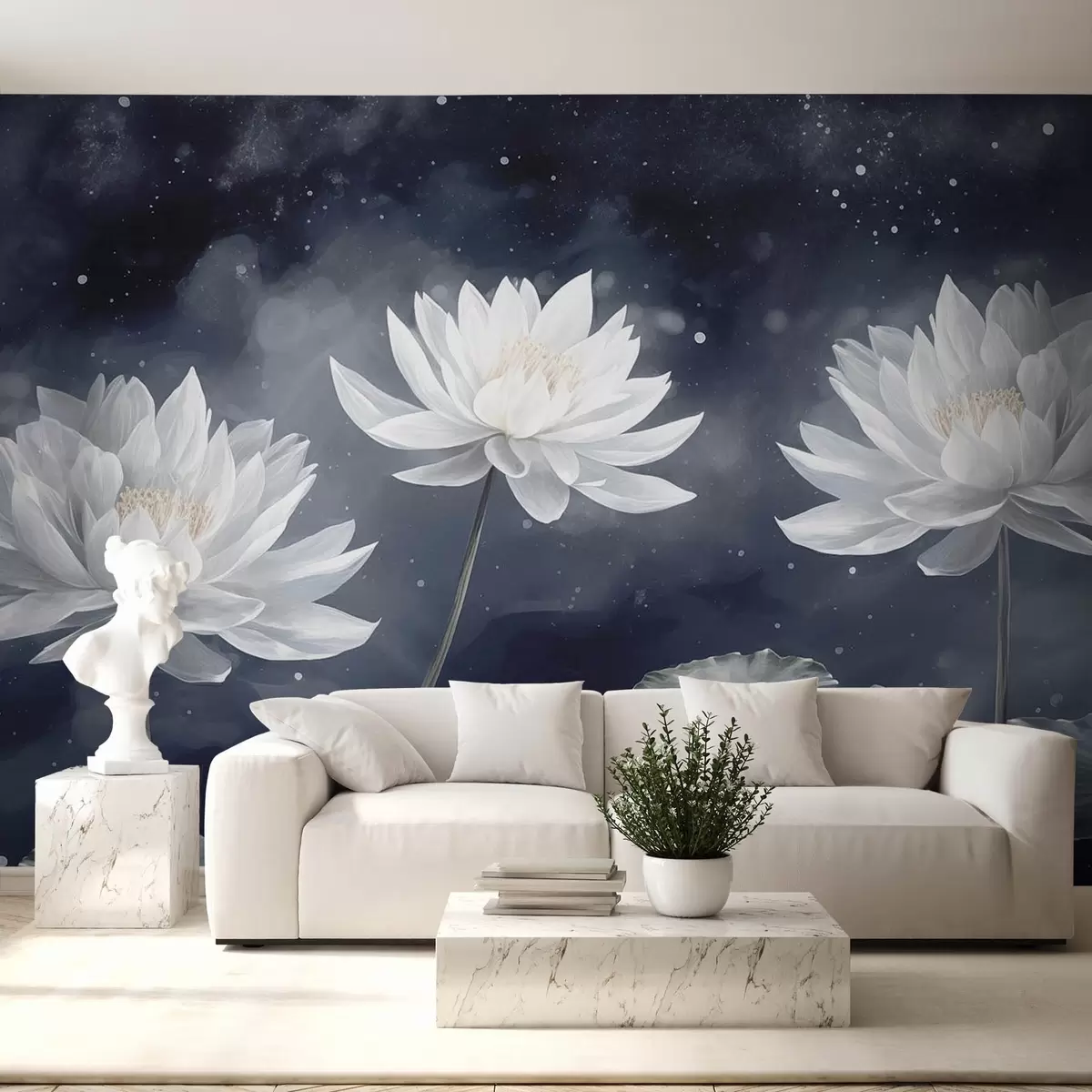 Fototapeta Trzy kwiaty lotosu na ciemnym tle Nr w08506