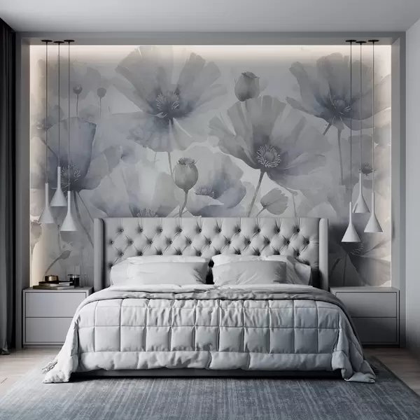 Fototapeta Delikatne teksturowane szare i białe kwiaty grunge z miękkimi, rozmytymi płatkami na białym tle Nr w08526