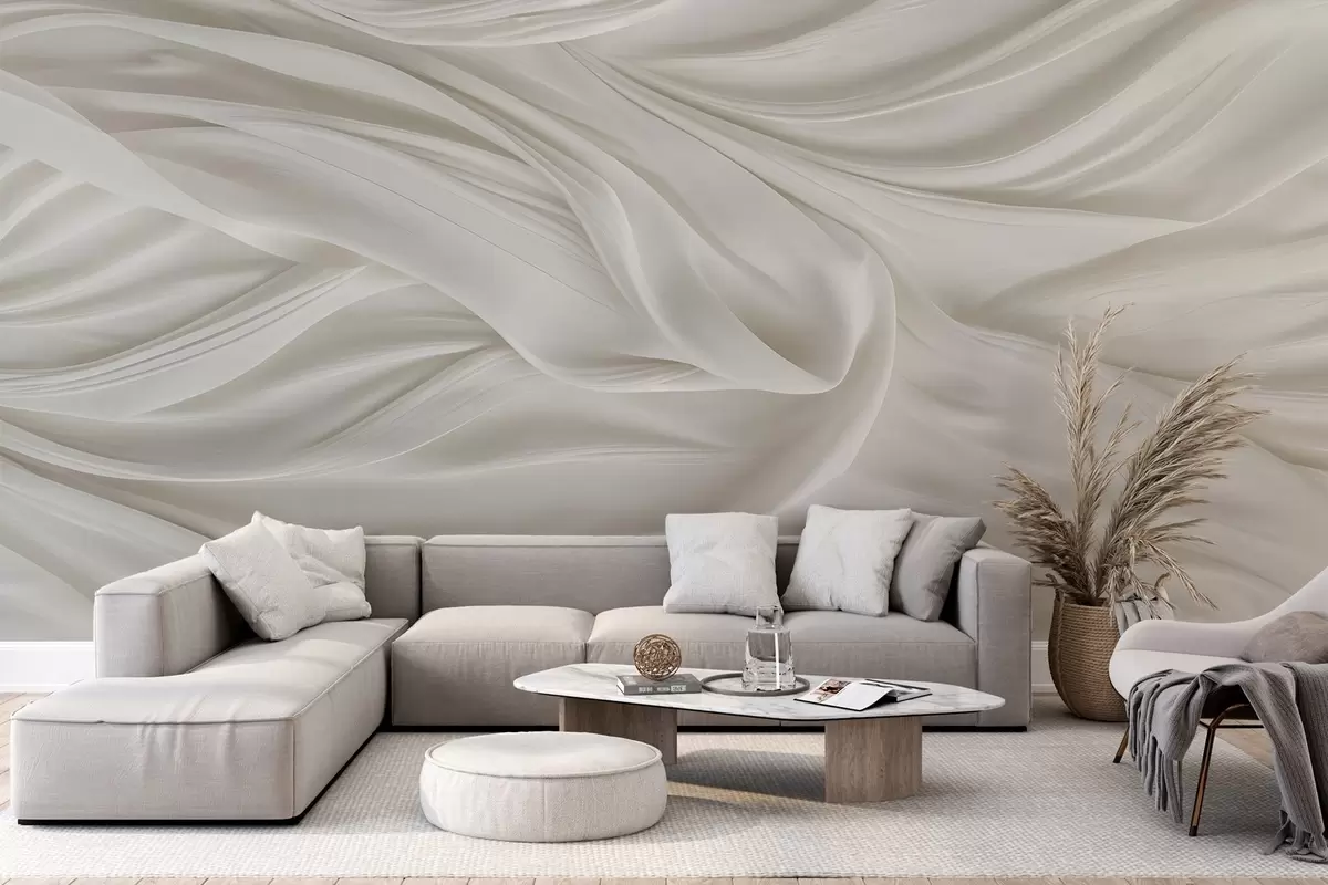 Fototapeta Nowoczesny nadruk imitujący gładką, lejącą się białą tkaninę z miękkimi, powiewającymi fałdami i zagnieceniami Nr w08537