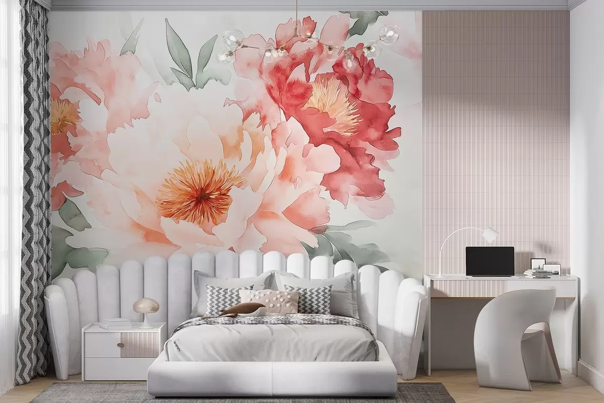Fototapeta Duże, delikatne piwonie akwarelowe Nr w08571