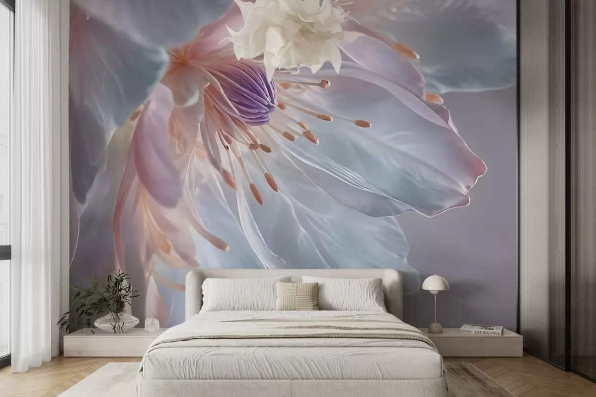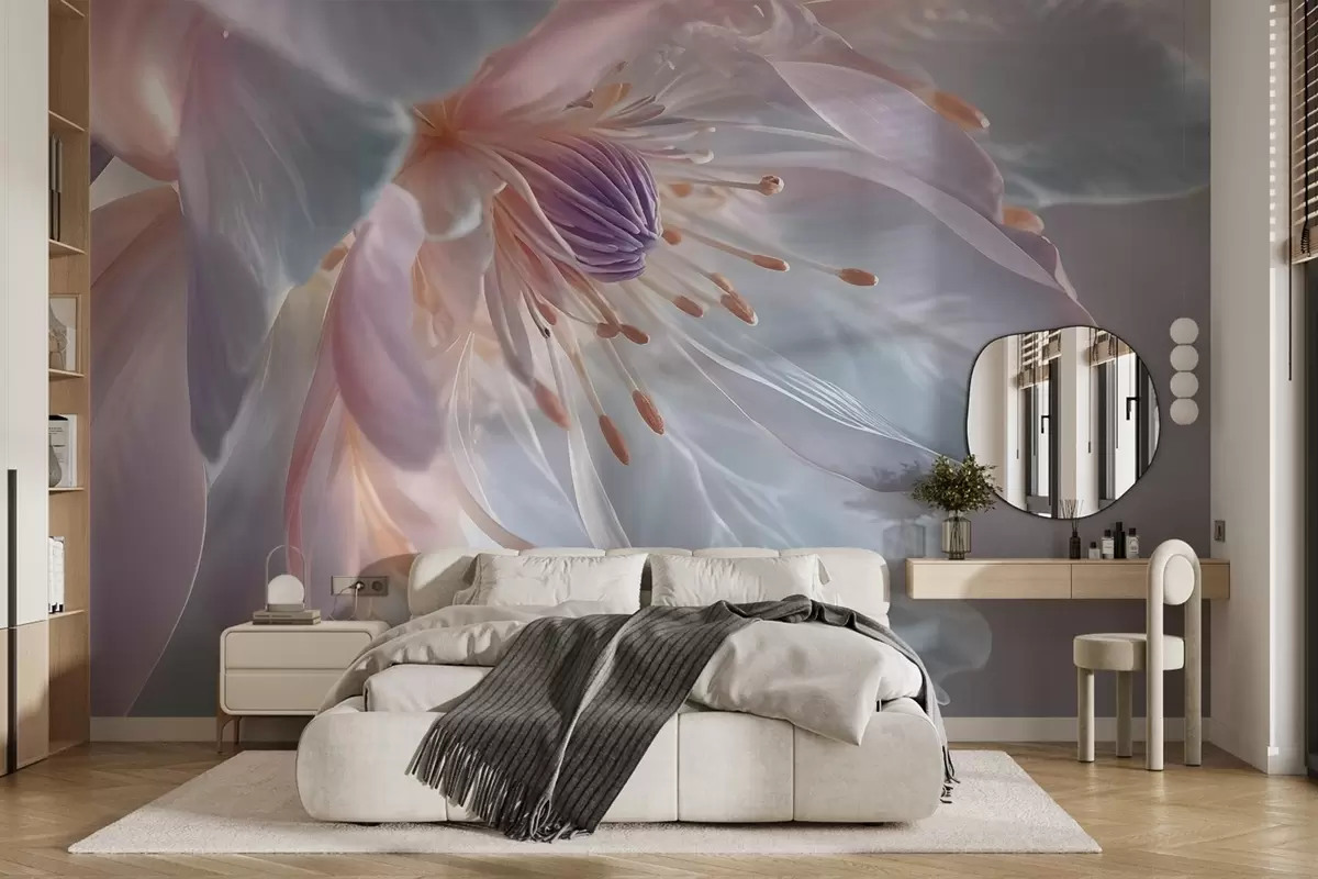 Fototapeta Zbliżenie delikatnego, pastelowego kwiatu z miękkimi, półprzezroczystymi płatkami i żywym środkiem Nr w08605