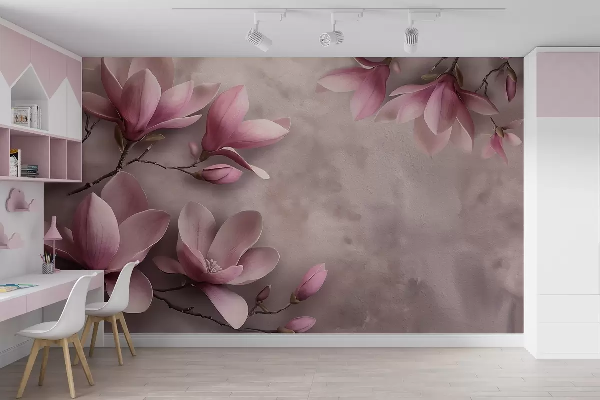 Fototapeta Delikatne różowe magnolie na betonowej ścianie Nr w08636