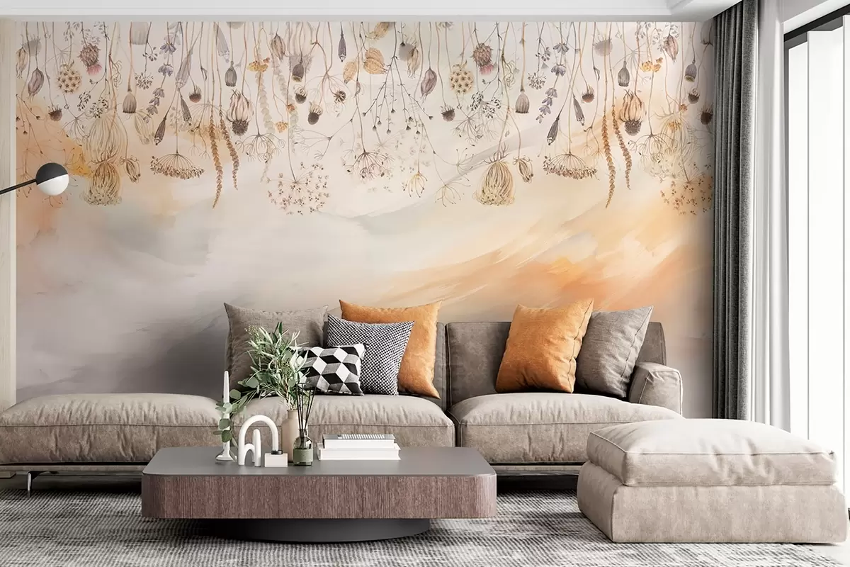 Fototapeta Kwiaty w stylu akwareli w pastelowych odcieniach na tle pociągnięć pędzla Nr w08681