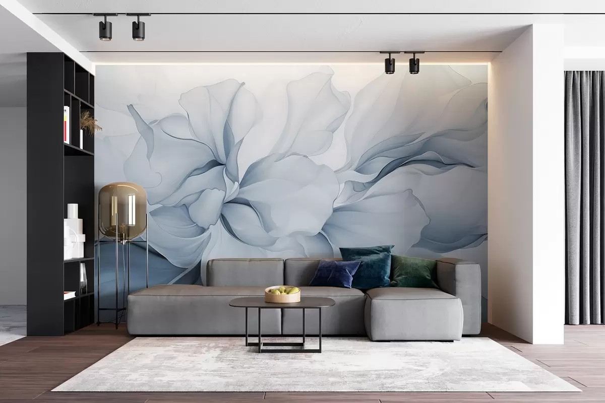 Fototapeta Płynne abstrakcyjne płatki kwiatów półprzezroczyste i warstwowe kształty w pastelowych kolorach, w odcieniach niebieskiego Nr w08701v2