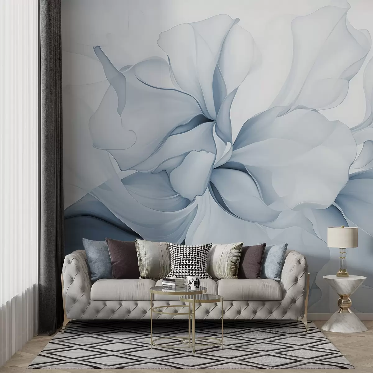 Fototapeta Płynne abstrakcyjne płatki kwiatów półprzezroczyste i warstwowe kształty w pastelowych kolorach, w odcieniach niebieskiego Nr w08701v2
