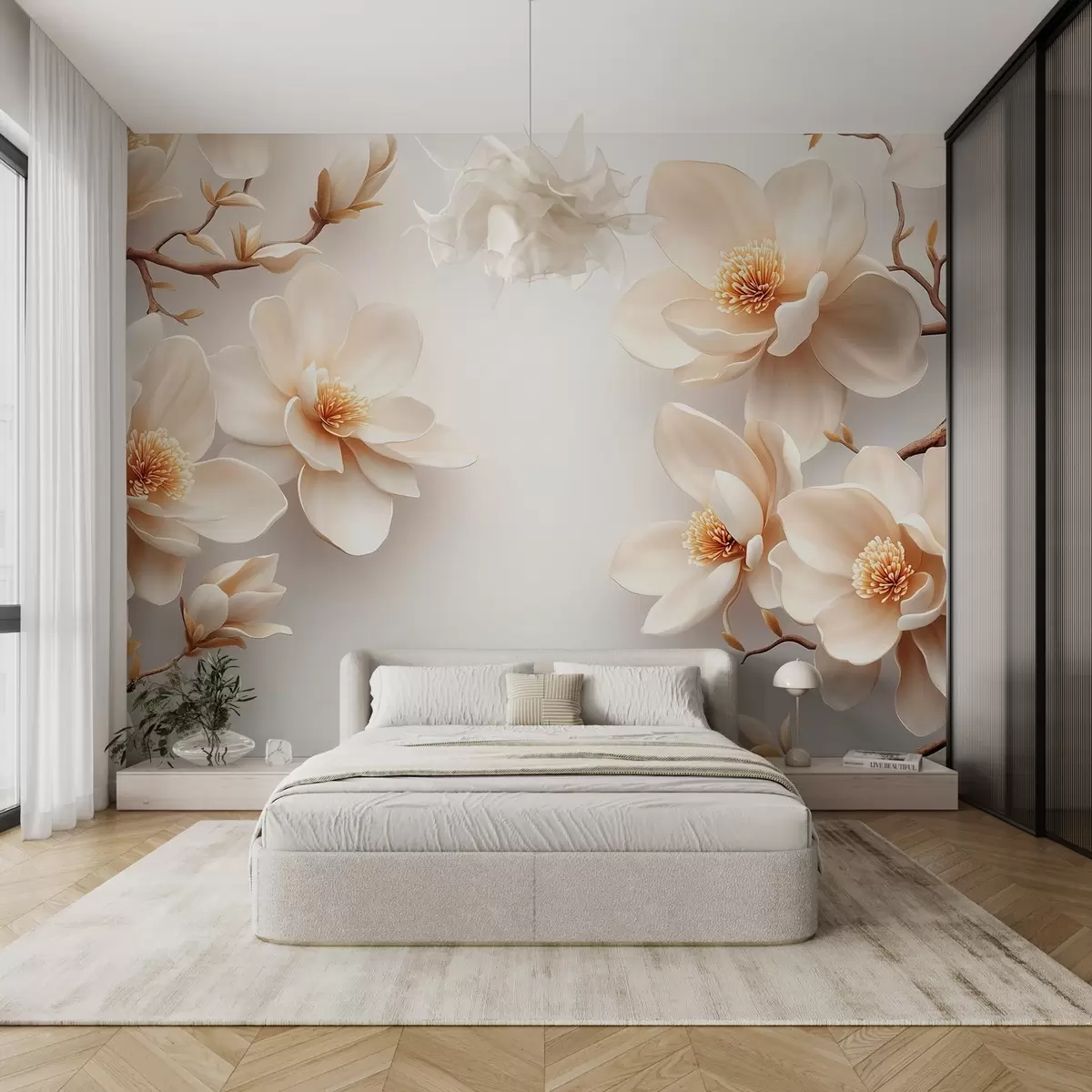 Fototapeta Piękne kwitnące kremowe kwiaty magnolii na białym tle Nr w08704