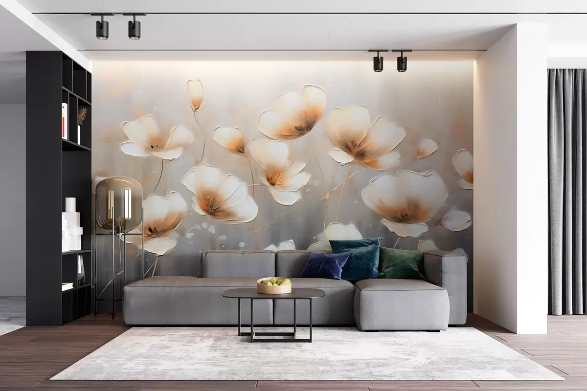 Fototapeta Eleganckie kwiaty o delikatnych, miękkich płatkach w beżowo-niebieskich odcieniach Nr w08746v1