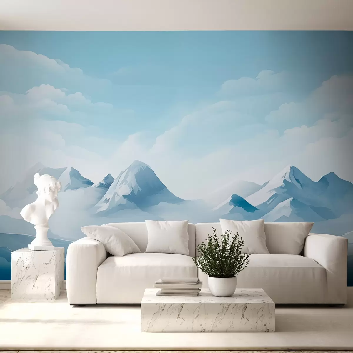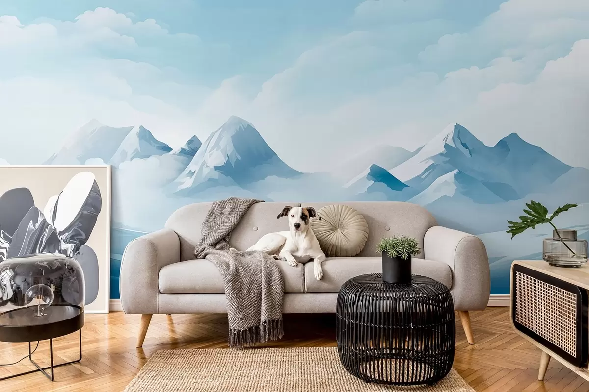 Fototapeta Minimalistyczne niebieskie chmury i góry, lodowata pogoda Nr w08811