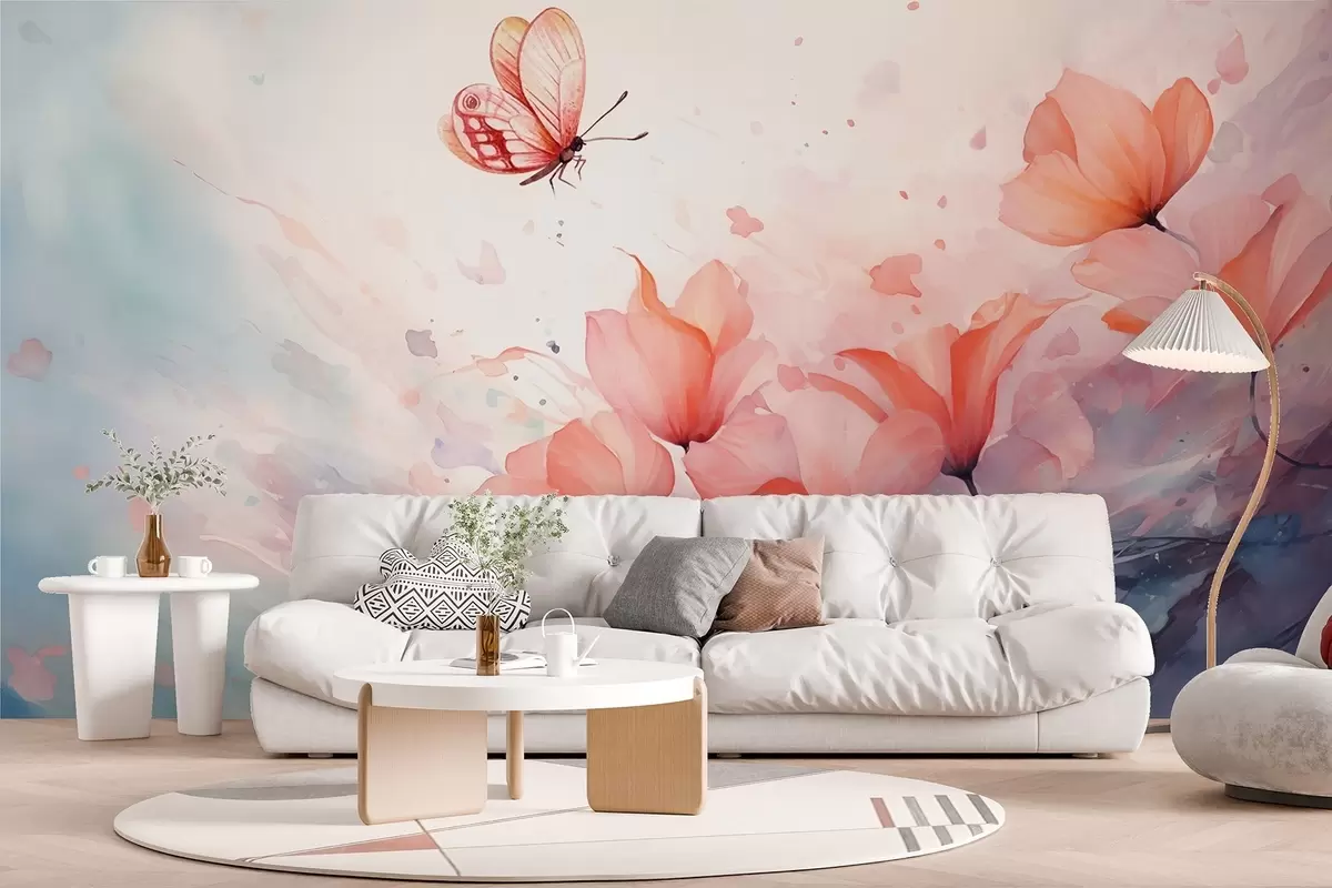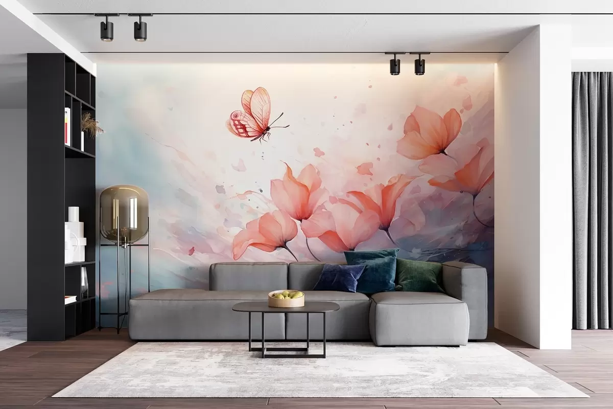 Fototapeta Delikatne maki z motylem w stylu akwareli Nr w08849