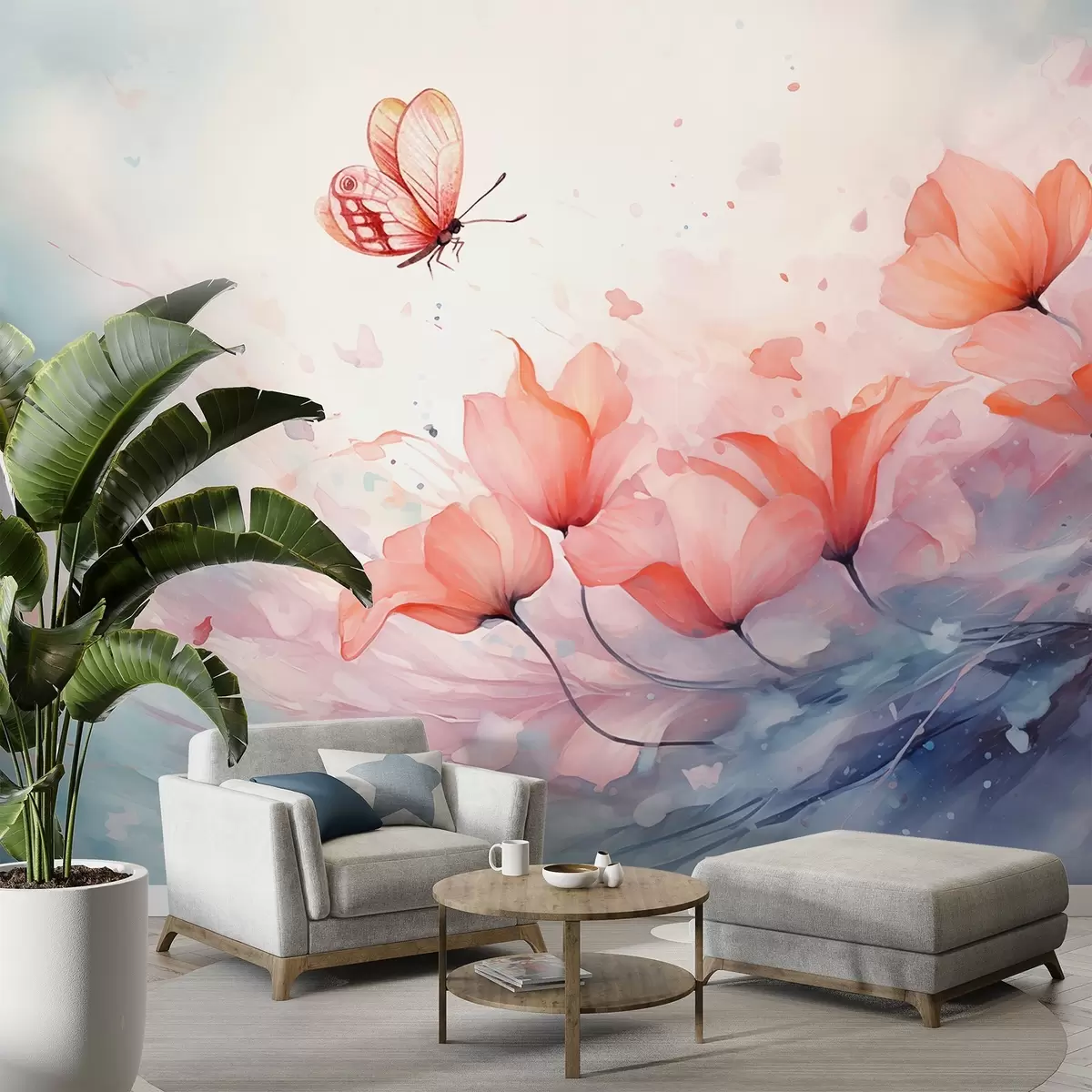Fototapeta Delikatne maki z motylem w stylu akwareli Nr w08849