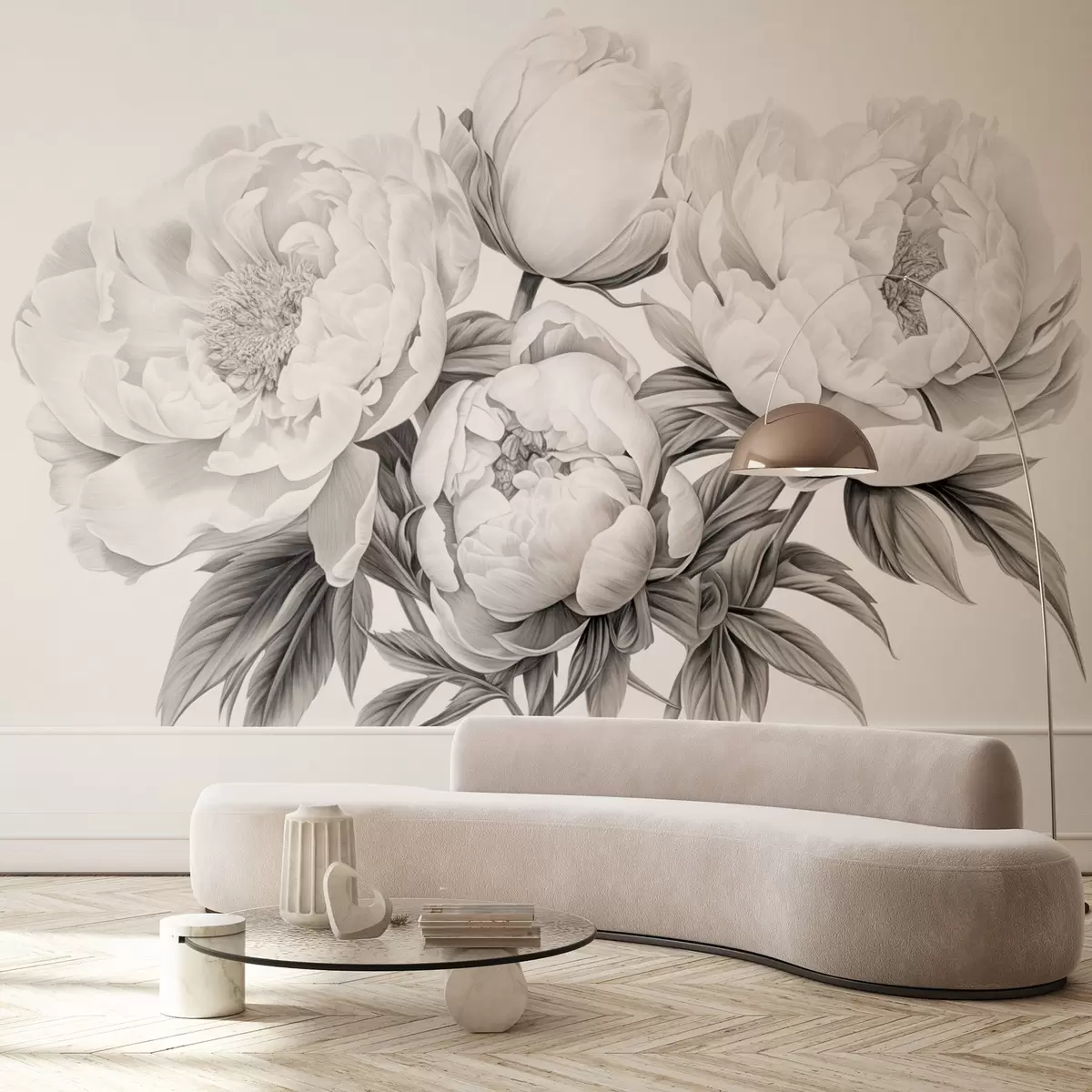 Fototapeta Czarno-białe piwonie w stylu rysunku ołówkiem Nr w08852