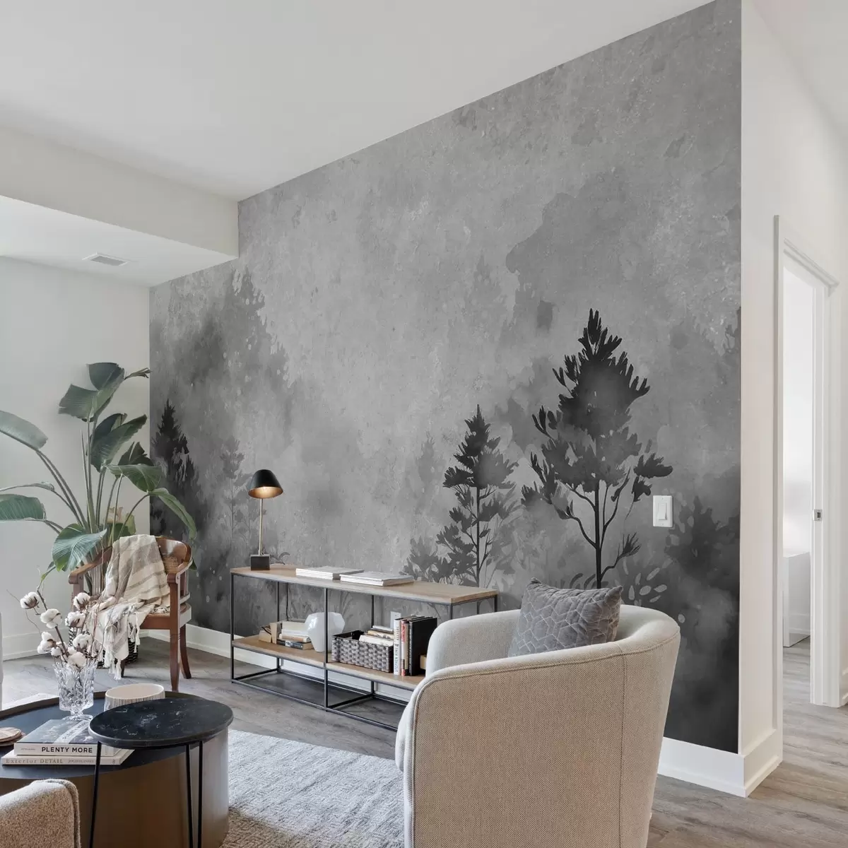 Fototapeta Las, imitacja akwareli w stylu czarno-białym Nr w08862v1