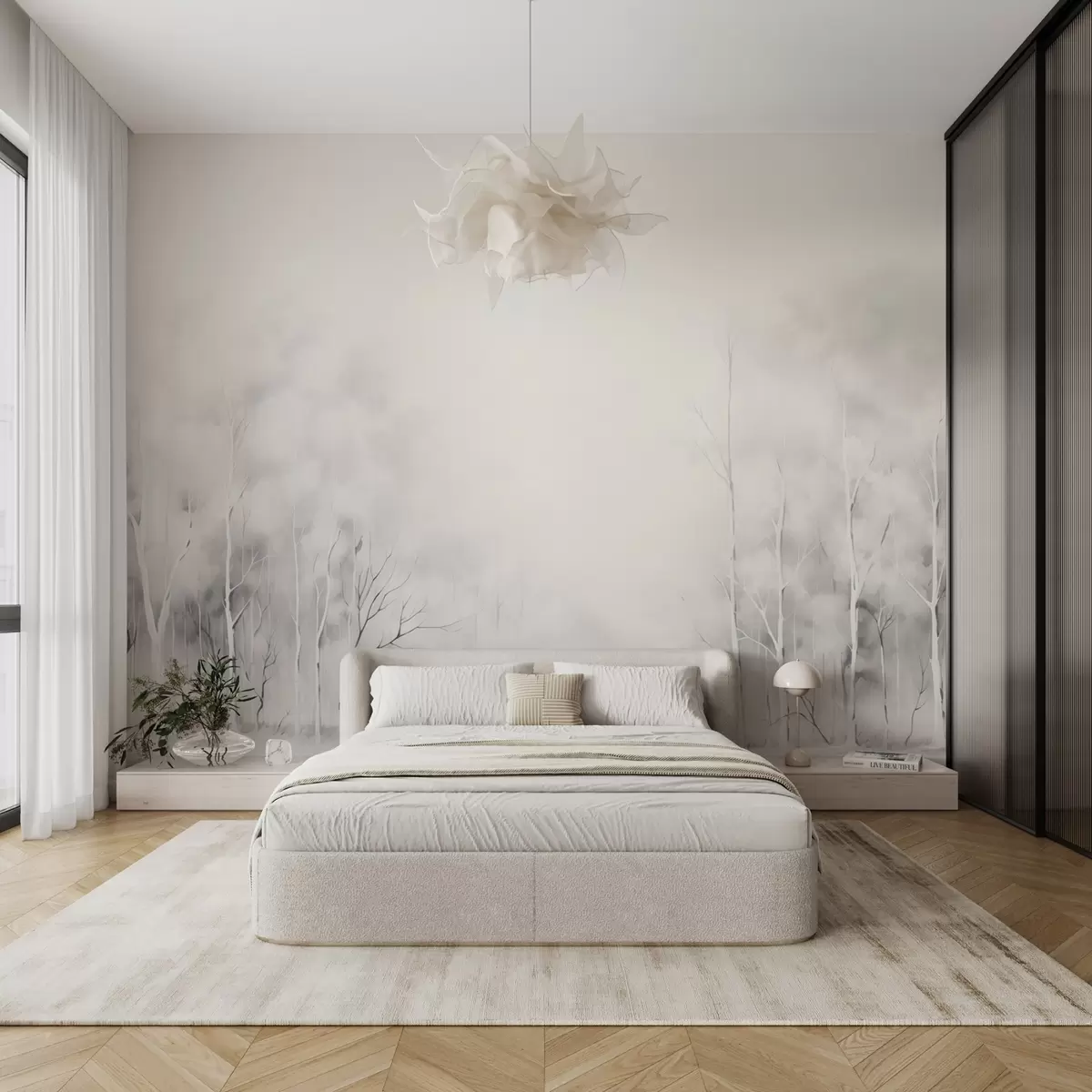 Fototapeta Drzewa we mgle w stylu akwareli na ciepłym tle Nr w08875