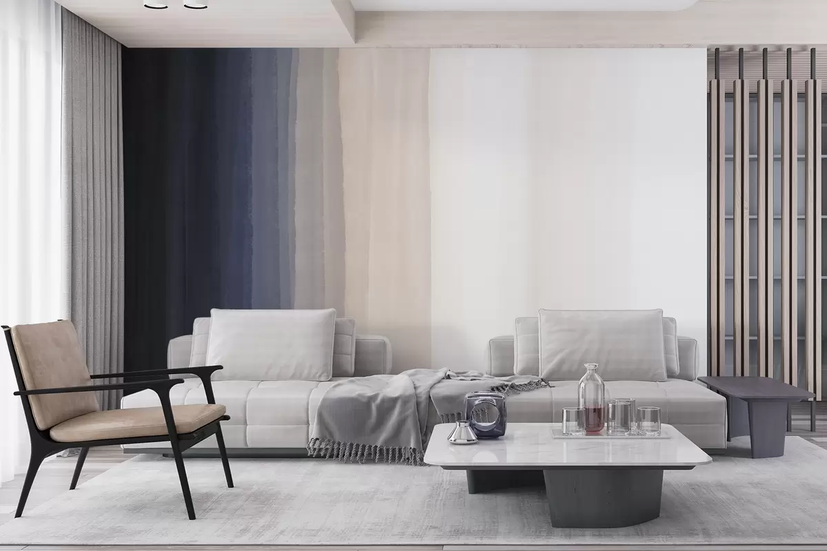 Fototapeta Abstrakcyjny minimalistyczny nadruk gradientowy z pionowymi paskami w kolorze ciemnoniebieskim, jasnobrzoskwiniowym i białym Nr w08915v1
