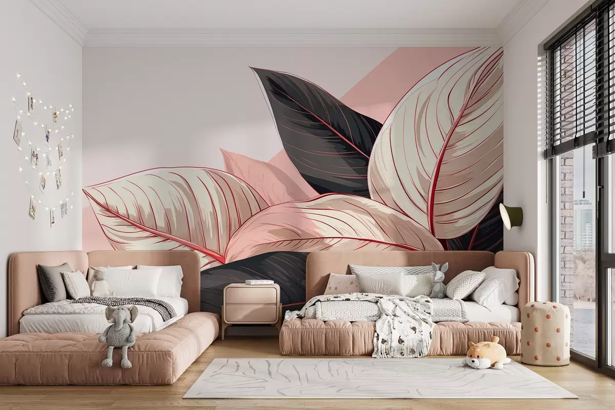 Fototapeta Różowo-szare duże tropikalne liście z różowym fragmentem Nr w08970v1