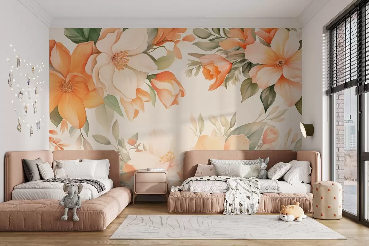 Fototapeta Duże pomarańczowe kwiaty w stylu akwareli Nr w09023