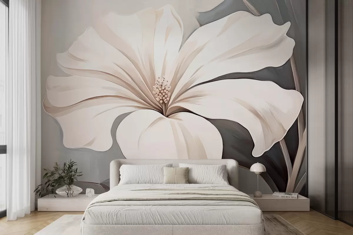Fototapeta Duży biały kwiat z płatkami na niebiesko-szarym tle Nr w09033