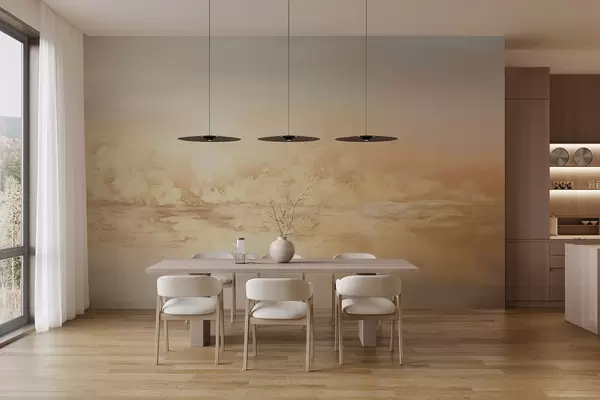 Fototapeta Abstrakcyjny, teksturowany krajobraz o ciepłych kolorach, miękkiej i sennej atmosferze oraz mieszance pomarańczowych, żółtych i białych odcieni Nr w09063
