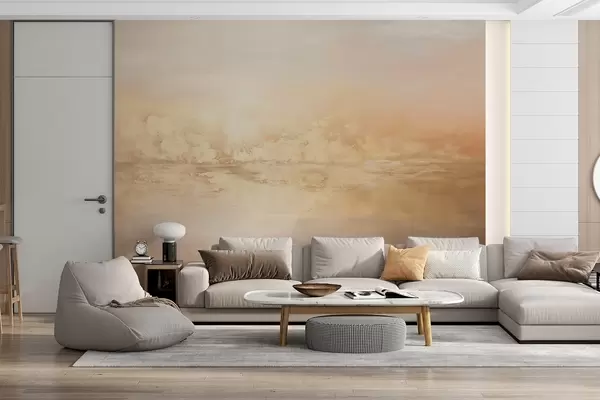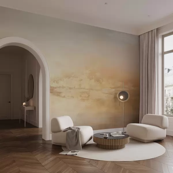 Fototapeta Abstrakcyjny, teksturowany krajobraz o ciepłych kolorach, miękkiej i sennej atmosferze oraz mieszance pomarańczowych, żółtych i białych odcieni Nr w09063
