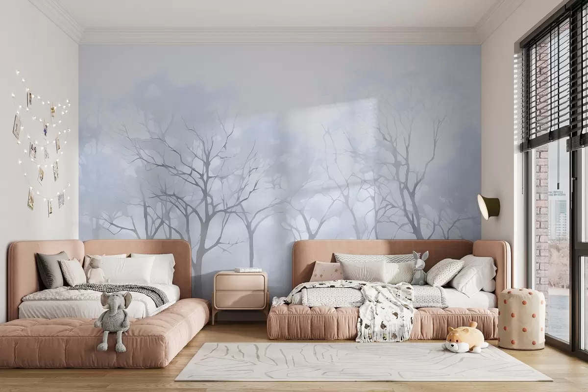 Fototapeta Monochromatyczne drzewa vintage we mgle Nr w09065v2
