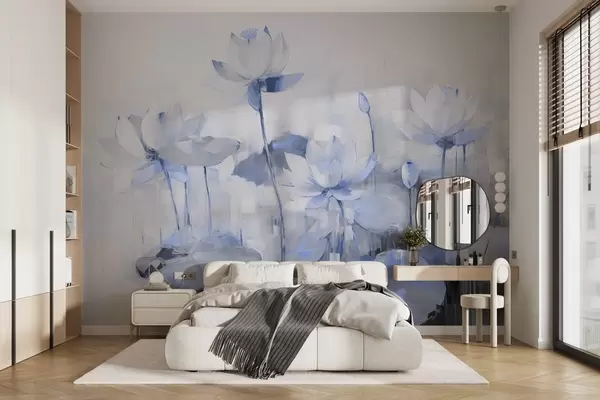 Fototapeta Delikatne kwiaty lotosu malowane akrylem Nr w09067v1