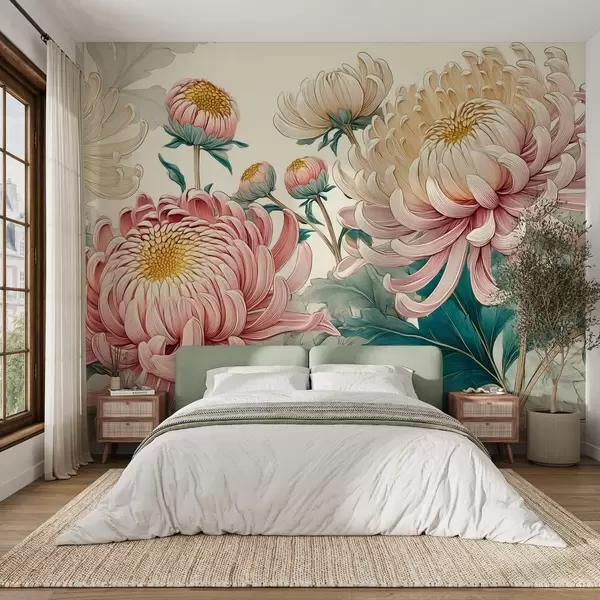 Fototapeta Misterny obraz białych i różowych chryzantem Nr w09081