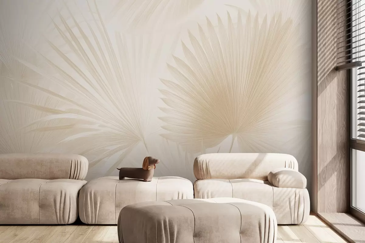 Fototapeta Miękkie wachlarze tropikalnych liści na jasnym tle Nr w09084v1
