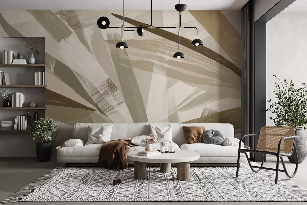 Fototapeta Abstrakcyjne liście w odcieniach zieleni i beżu Nr w09091