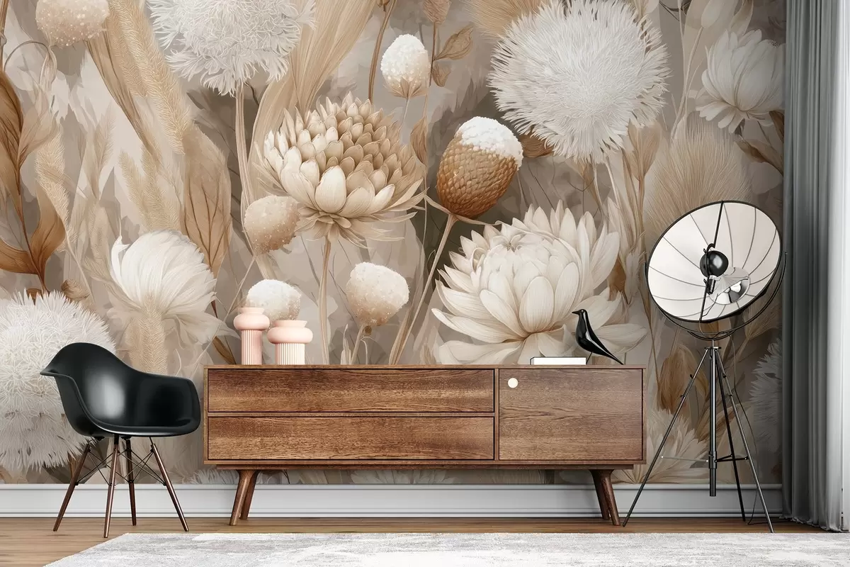 Fototapeta Boho Harmony: Teksturowane kwiaty w odcieniach beżu i kremu Nr w09121