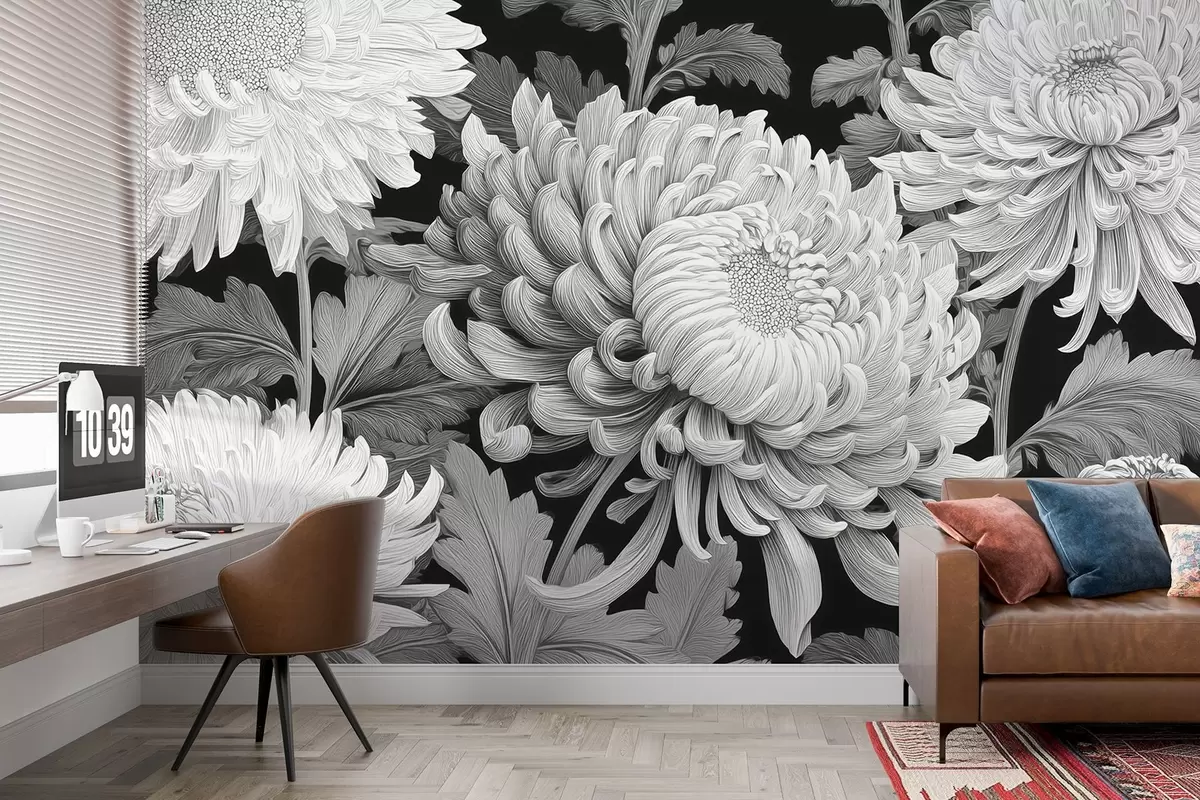 Fototapeta Czarno-białe duże storczyki z liśćmi Nr w09125v1