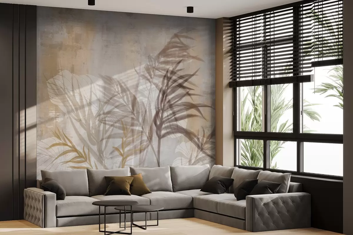 Fototapeta Beżowo-brązowa ilustracja botaniczna trawy pampasowej, miękkie tekstury i minimalistyczna kompozycja Nr w09162