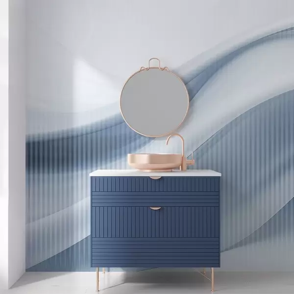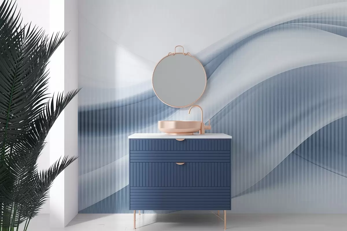 Fototapeta Abstrakcyjny nadruk z płynnymi liniami i subtelnymi pionowymi paskami, tworzący poczucie ruchu i głębi, niebieska paleta kolorów Nr w09189v1