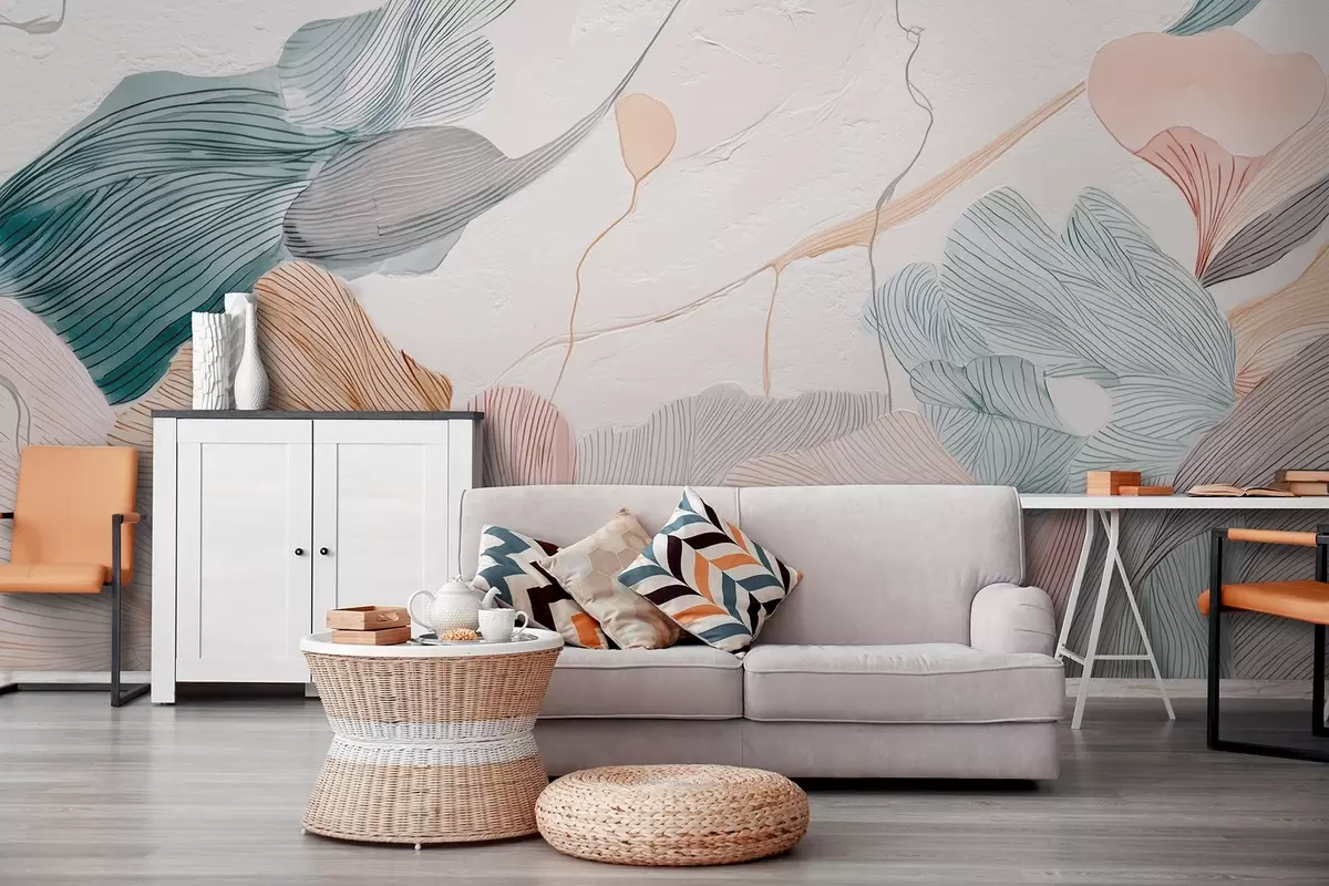 Fototapeta Abstrakcyjna grafika liści w ciepłych pastelowych odcieniach Nr w09222