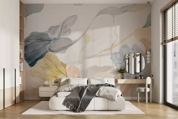 Fototapeta Abstrakcyjna grafika liści w ciepłych i chłodnych pastelowych odcieniach Nr w09222v1
