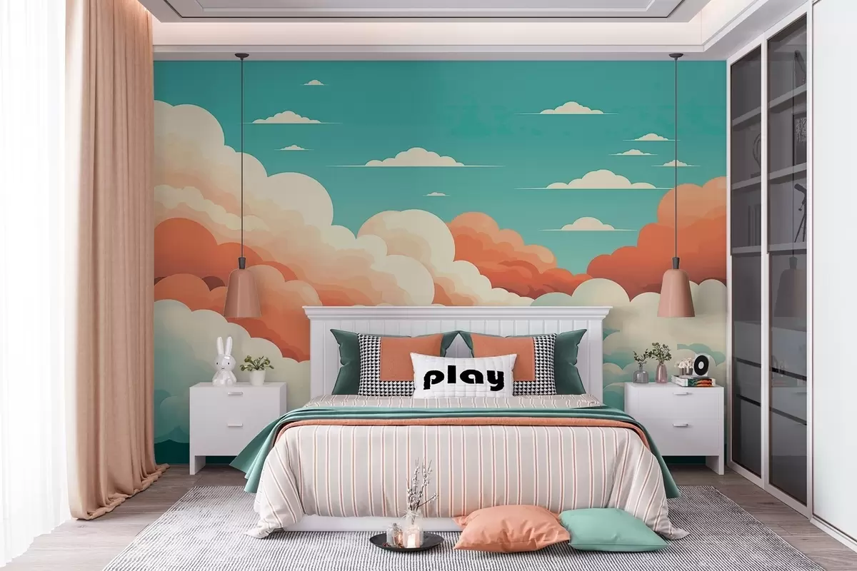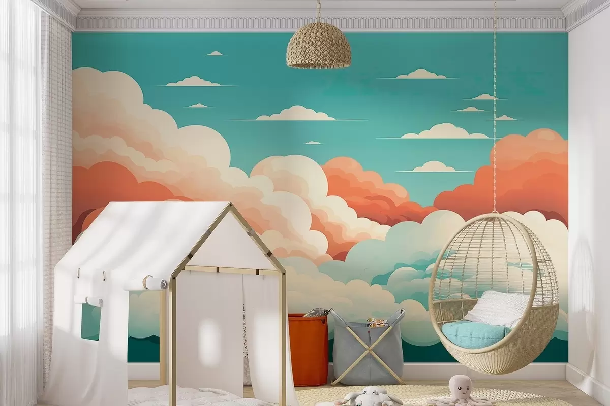 Fototapeta Kapryśne, kreskówkowe chmury pod błękitnym niebem Nr w09246