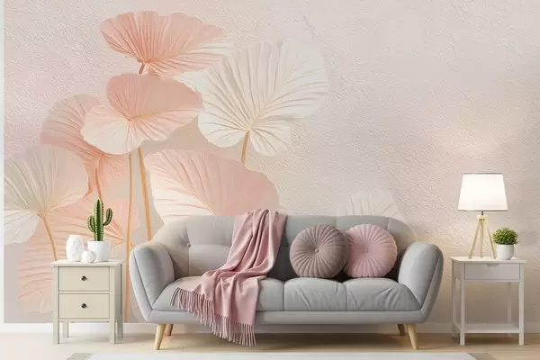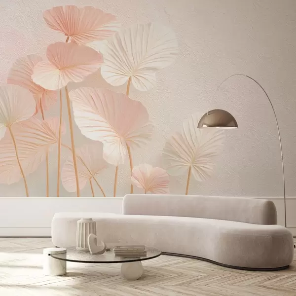 Fototapeta Eleganckie, duże tropikalne liście w delikatnym różowym kolorze Nr w09252v1