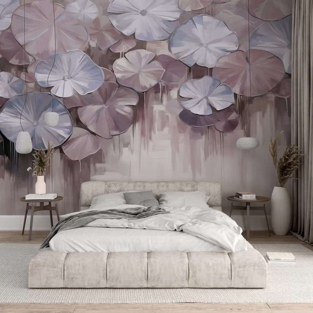 Fototapeta Teksturowane płatki lilii z fioletowymi i niebieskimi kolorami w stawie, tło jest rozmytą mieszanką delikatnych odcieni fioletu Nr w09255v1