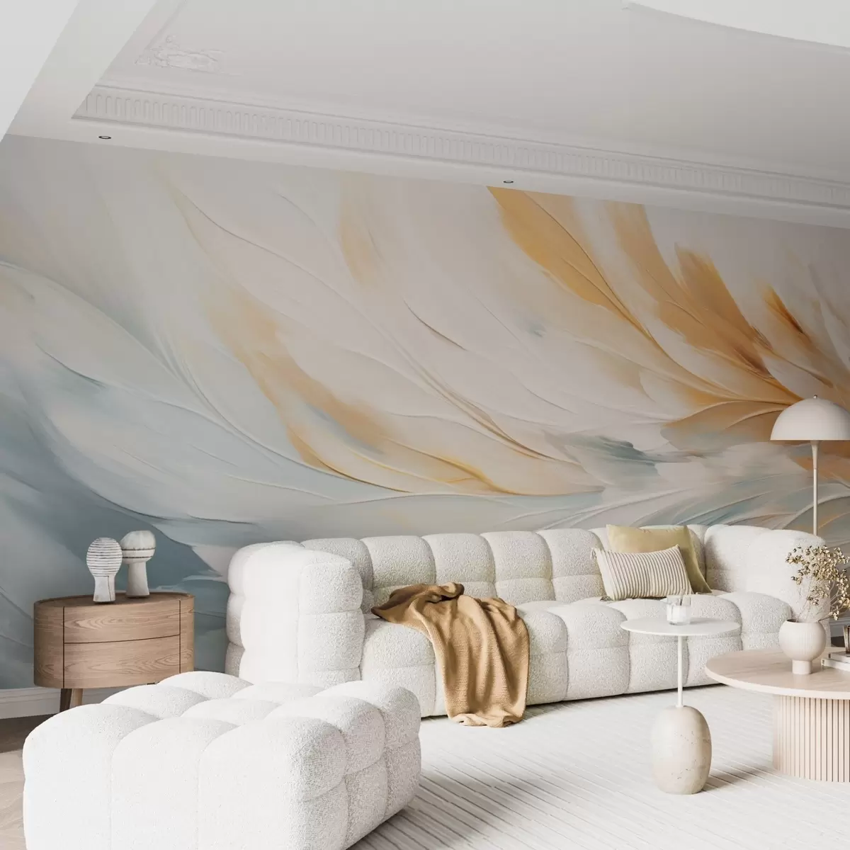 Fototapeta Abstrakcyjne pióra w delikatnych niebieskich i pomarańczowych odcieniach Nr w09283