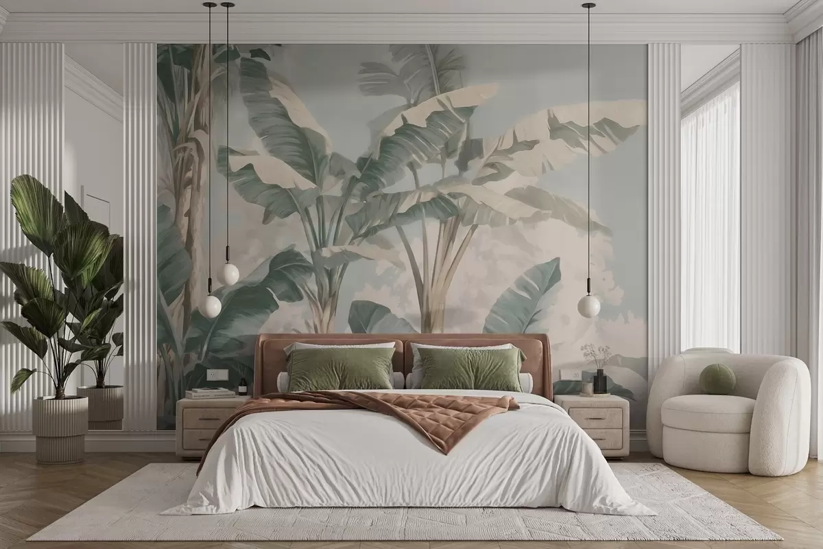 Fototapeta Tropikalne liście bananowca w delikatnych pastelowych odcieniach Nr w09311