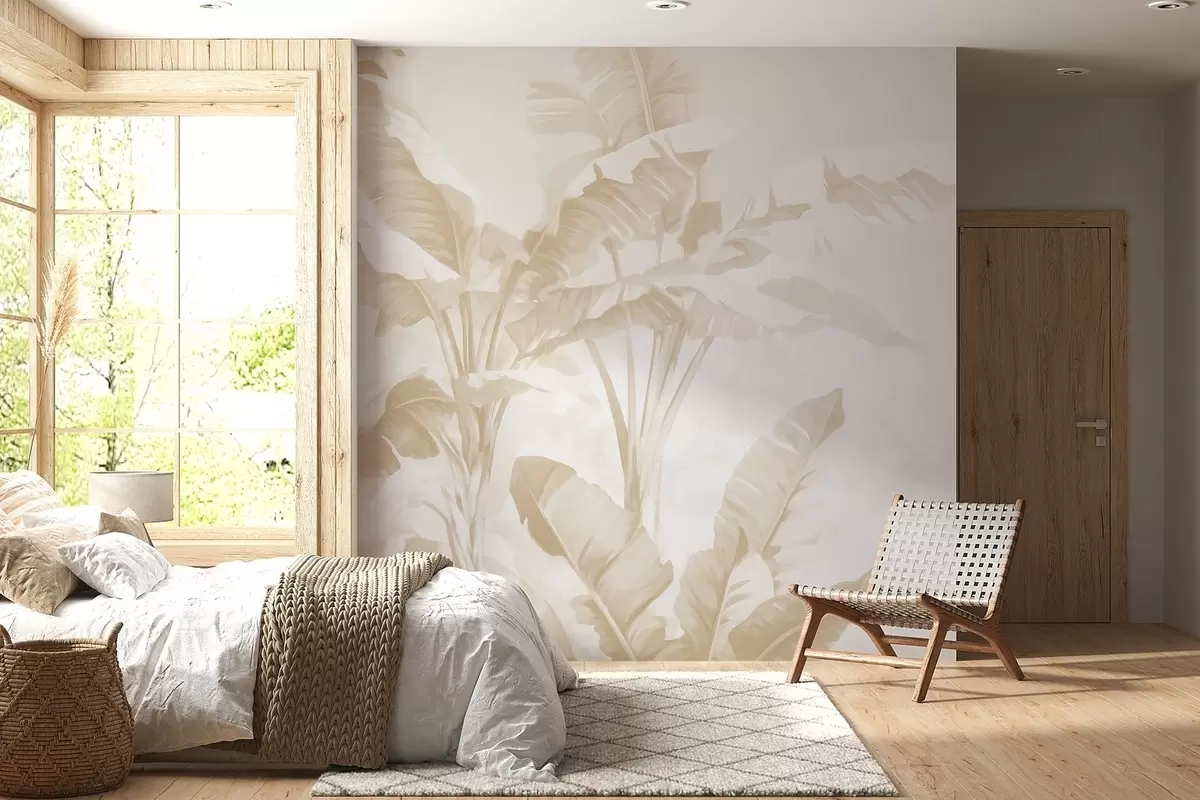 Fototapeta Tropikalne liście bananowca w delikatnych odcieniach beżu Nr w09311v2