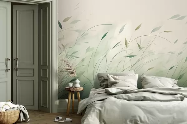 Fototapeta Zielona trawa na wietrze w stylu akwareli Nr w09331