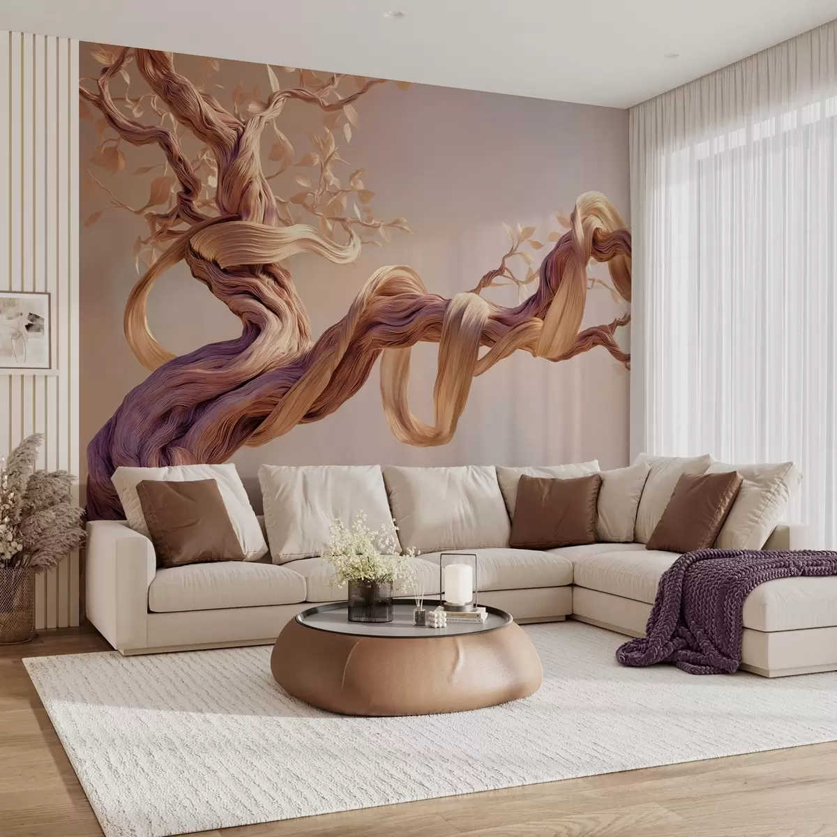Fototapeta Skręcony pień drzewa z ozdobnymi liśćmi Nr w09360